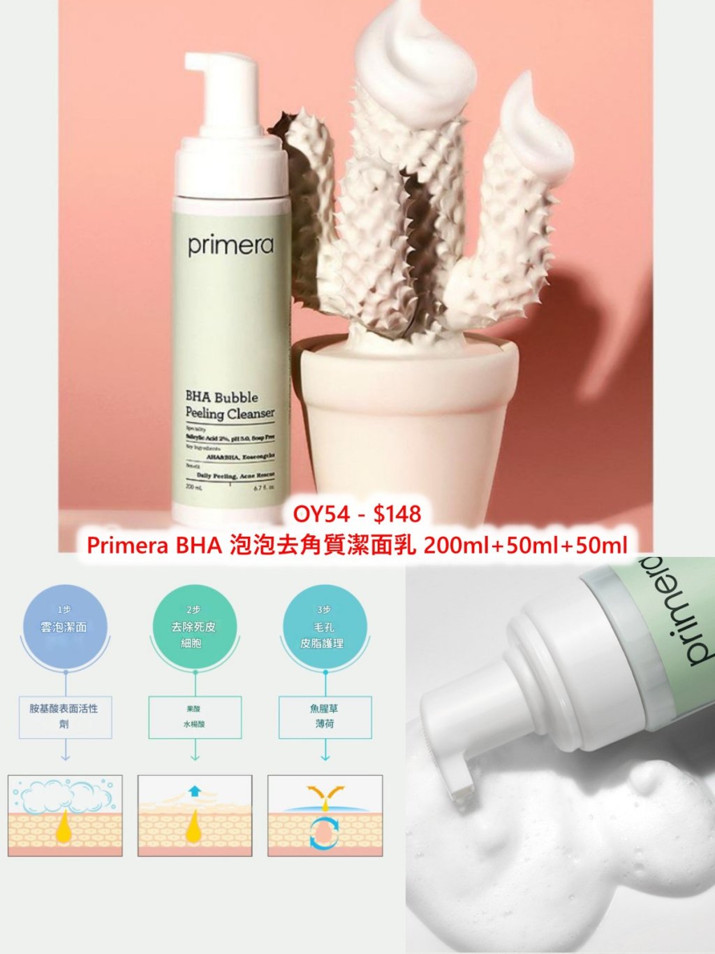 OY54 - Primera BHA 泡泡去角質潔面乳 200ml+50ml+50ml